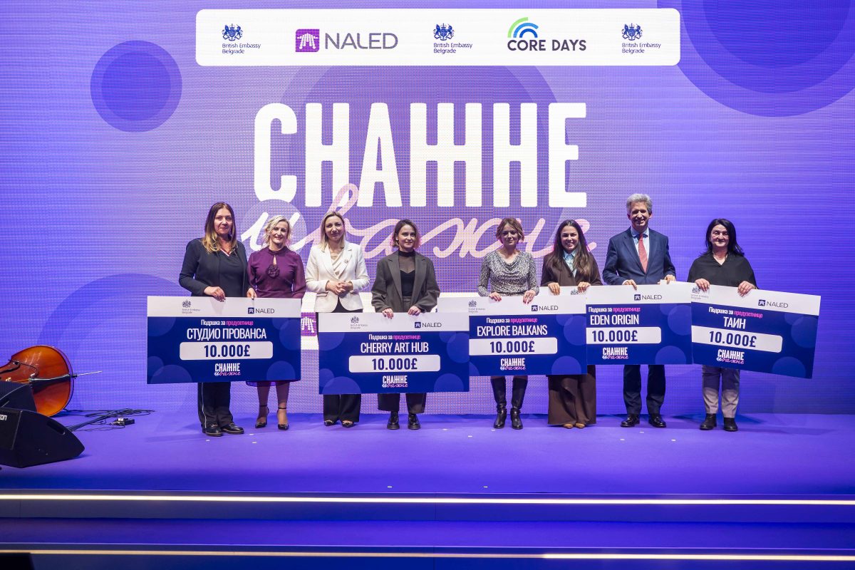 Vojnički hleb iz Prvog svetskog rata pretvoren u savremeni pekarski brend, održivi nameštaj od recikliranih materijala, organski BIO eliksiri za biljke, e-bike ture koje spajaju prirodu i lokalne domaćine, bezalkoholni liker od lavande sa čačanskih polja – to su biznisi pet preduzetnica iz Srbije koje su osvojile grantove od po 10.000 funti kroz program „Snažne i važne“ koji sprovodi NALED, a finansira Britanska ambasada u Srbiji. Sinoć su u okviru CORE Days konferencije svečano dodeljeni grantovi.